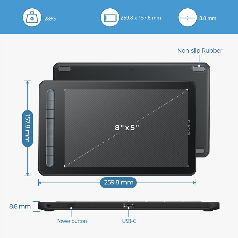 The Deco MW Drawing Tablet comes with a large-capacity lithium battery (1000mAh/3.7V) for more than 10 hours that keeps the power going throughout all of your day.
